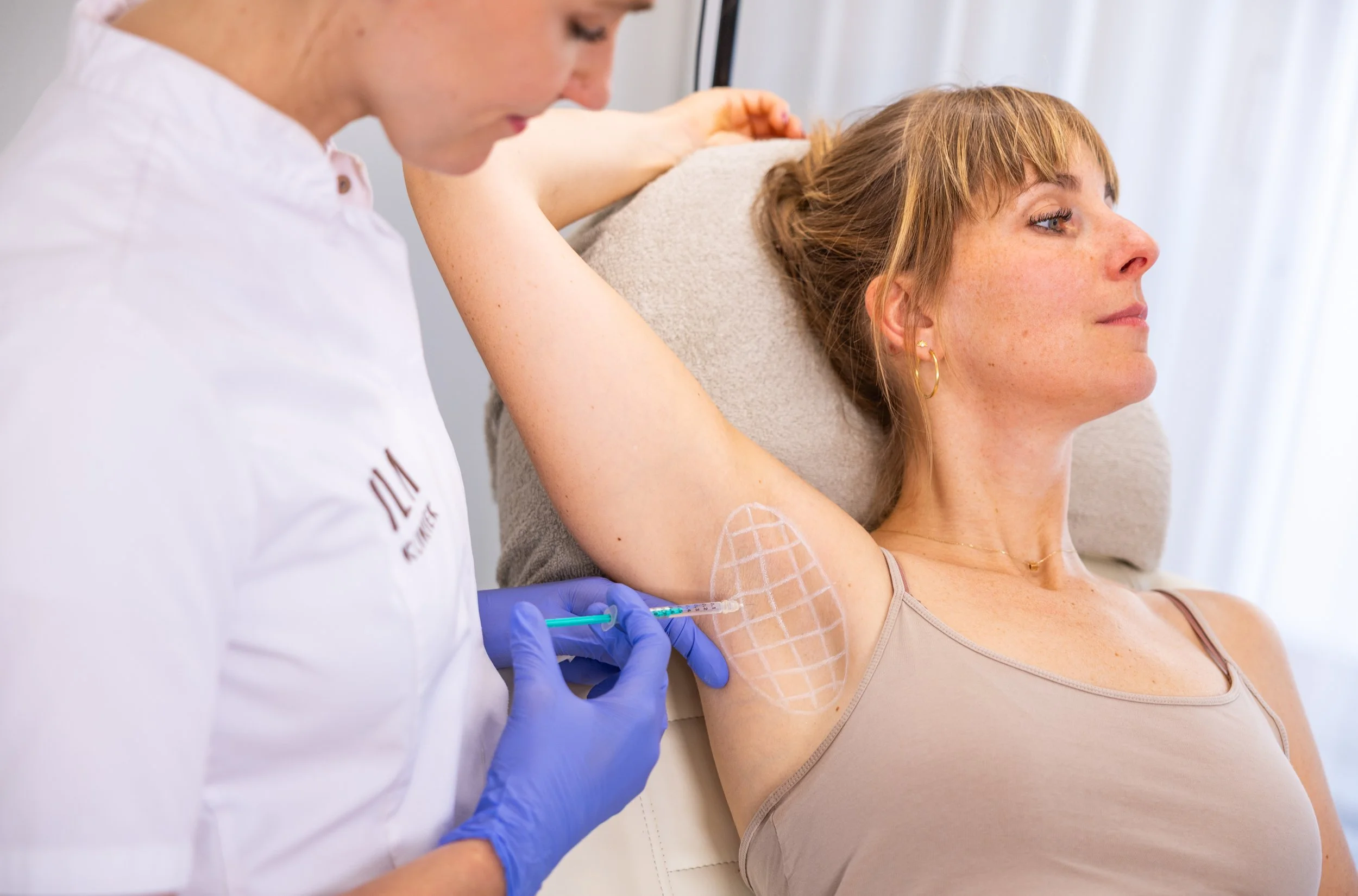 Door het specifieke probleemgebied met botuline toxine te injecteren, worden de signalen naar de zenuwen geblokkeerd die de zweetklieren aansporen tot zweetproductie. Hierdoor gaan er geen prikkels meer naar de zweetklieren en zullen deze stoppen met het produceren van zweet.